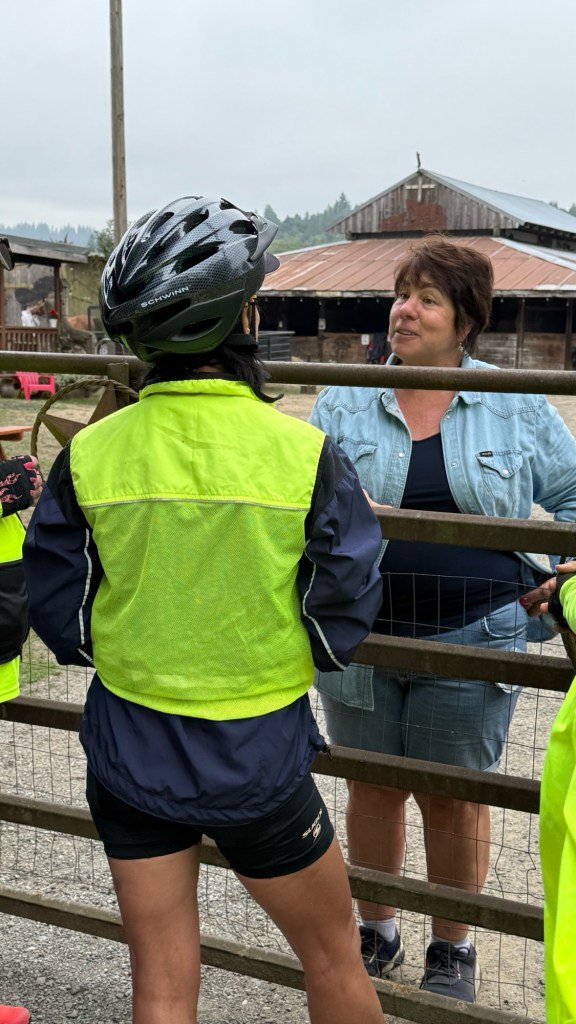 After this stop was where we would do a little bit of climbing to retrace the flat part of our route. And then — there was road work going on the had us stopped for at least 15 minutes. And the road work was to tamp down newly laid and oiled chip seal. Not the best riding surface.