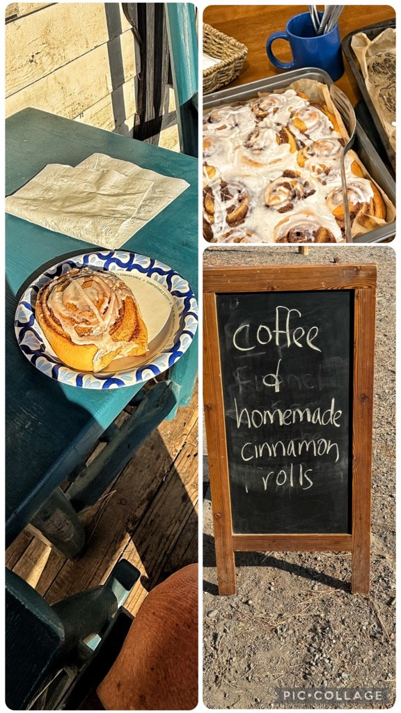 This morning more of the members than I expected left for home. A little sad to say goodbye to so many, but seems all of us will return here next year. The outing is relaxed enough, with just enough going on without feeling rushed, and all the women were super friendly. We still have a good number staying this final night, and there was still a morning baked good offering. Warm from the oven 😉. I had mine while working on the blog.