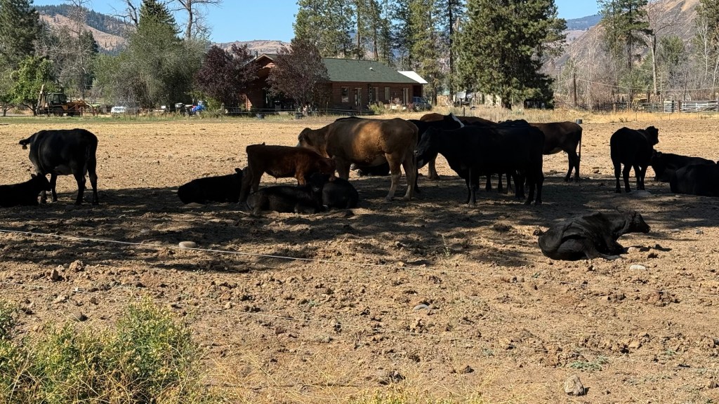These are the smart cows. It is sunny and often hot over here and this group found the only shade around.