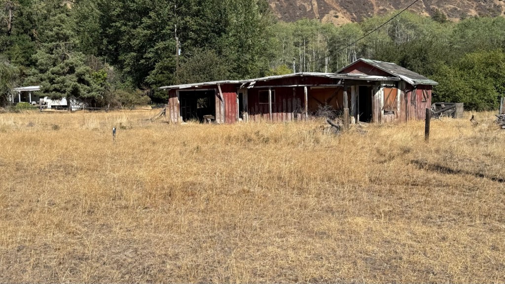 A nice country road, quiet and with hills and farms lining the way. And a few tumble down buildings and structures.