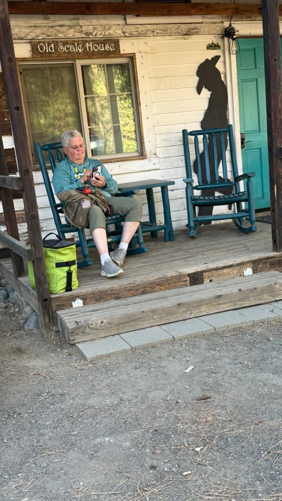 I got back on 410 and extended my ride for a little and though the short spurts of traffic (usually only on or two at a time) were not intimidating and I did not feel unsafe. After my nice afternoon on the saddle I returned to camp and found Susan on the porch of a visiting cabin.