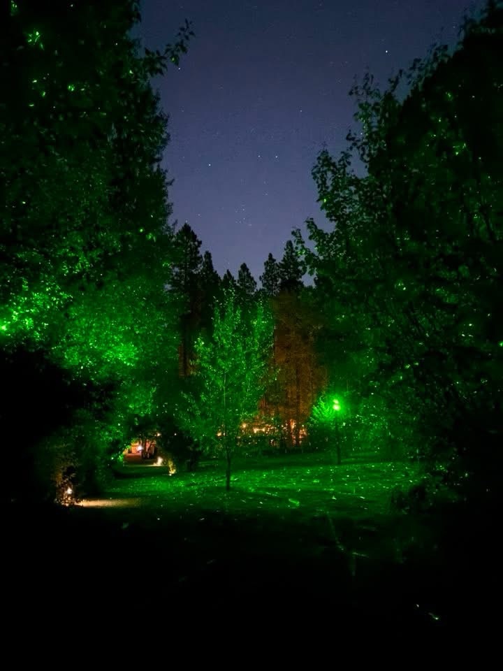 Then we walked up to the “fireflies”. Well make believe fireflies anyway. The previous owner had set up little lights in the trees surrounding this open field, and is an “I Do” place for weddings ;’-). Difficult to see, but maybe if you embiggen the photo you will see the little lights.