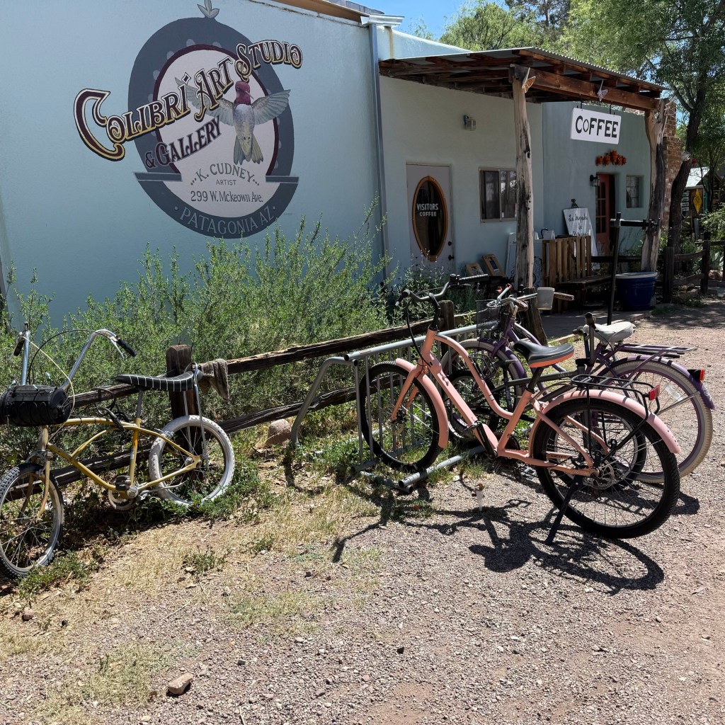 Passing by the entrance road to Patagonia Lake State Park, we continued into town to look around, do a little food shopping at the market, and to get Susan’s pizza 🙄.