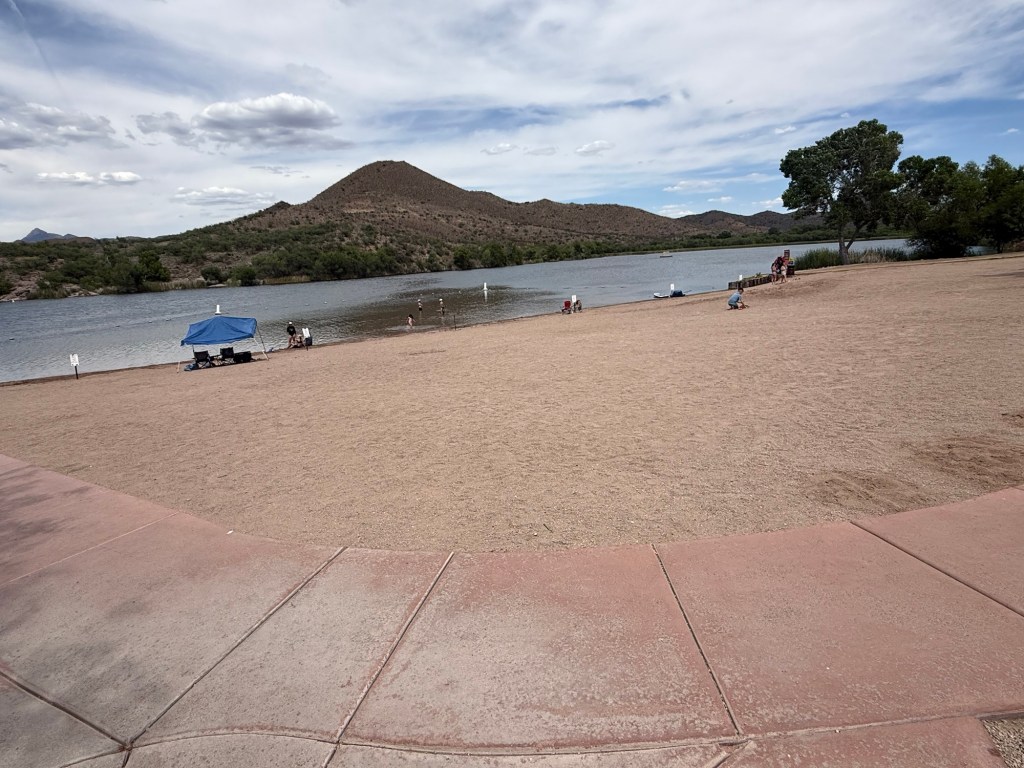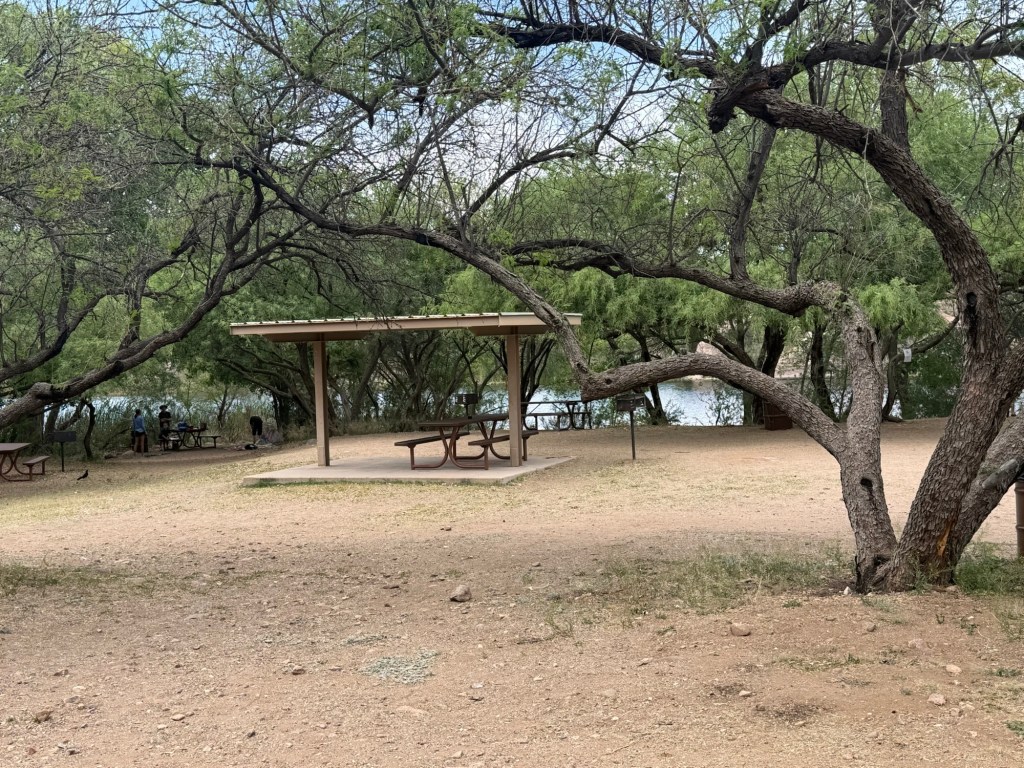 Here we are now at Patagonia Lake, set up our rig, walked around ever so little, and ate our pizza dinner.