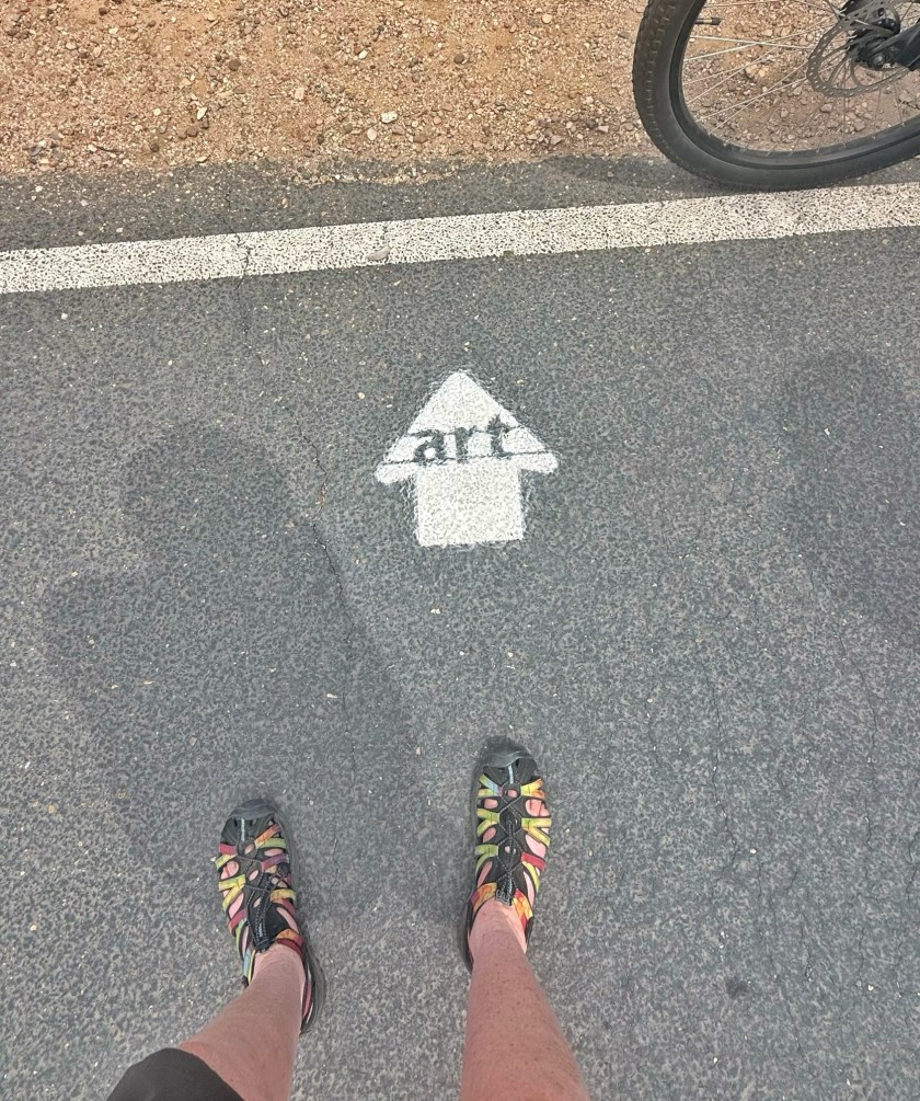 The Julian Wash was the section of trail we rode, and the group of riders were great as we moved along smoothly. For those who ride with their head down and pounding out the miles, there was the sign directing to some art work.