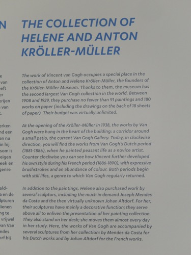 Between 1907 and 1922 Helene Kroller-Muller and her husband Anton Kroller bought almost 11,5 00 works of art. Helene’s dream was to have her own “museum house” where she could share her passion for art with others. In 1938 the Kroller-Muller Museum was opened. In the years that have followed, it has been extended several times with more buildings, and an expansive sculpture garden. The museum holds the second largest collection of Van Goghs in the world. There are also works of many of the the modern masters.
