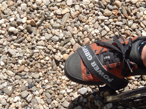 My initial issue was around the use of flat pedals. We were told to not bring our clipless pedals and shoes. At this time, I am not sure why, and see that one person did bring, and uses, his. Without my pedal system I am not too good at getting started from a standstill (such as at traffic signals, stop signs, rest breaks, etc.), and was quite the complainer (to Susan). We could bring Powergrips, but needed to bring those attached to a pedal. For several reasons, I chose to not bring those. Two of our riding companions brought theirs, and though Kristi loved hers, Andy did not. So he loaned them to me.