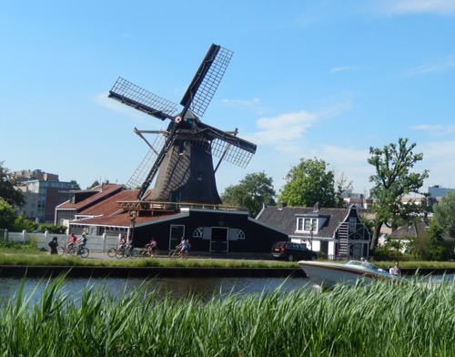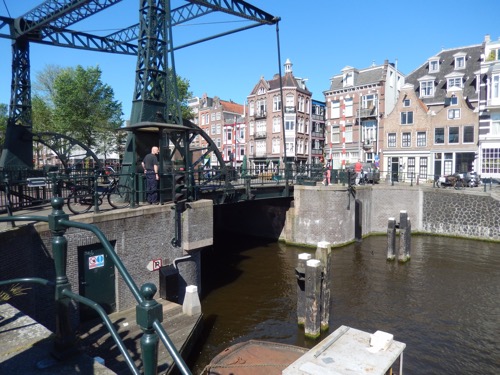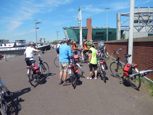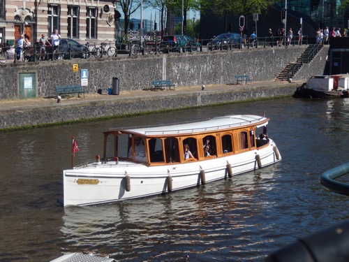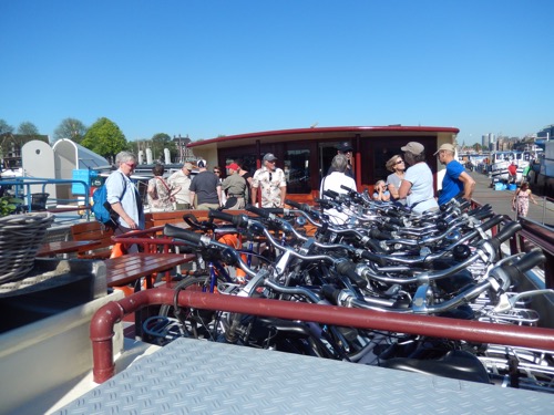 After a most delightful breakfast provided by our hotel, we walked the half hour to the dock to find our boat — The Lena Marie. Our agenda for the day had been for the boat to cruise us to the village of Weesp in the afternoon while we got our bikes fitted and learned about the rules of the Dutch roads. We would then take our short shakedown ride around the village, returning to the dock for the night.