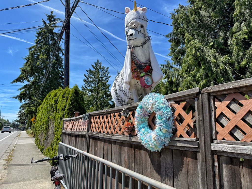 One of my rides took me past Beverly goat who is masquerading as unicorn.