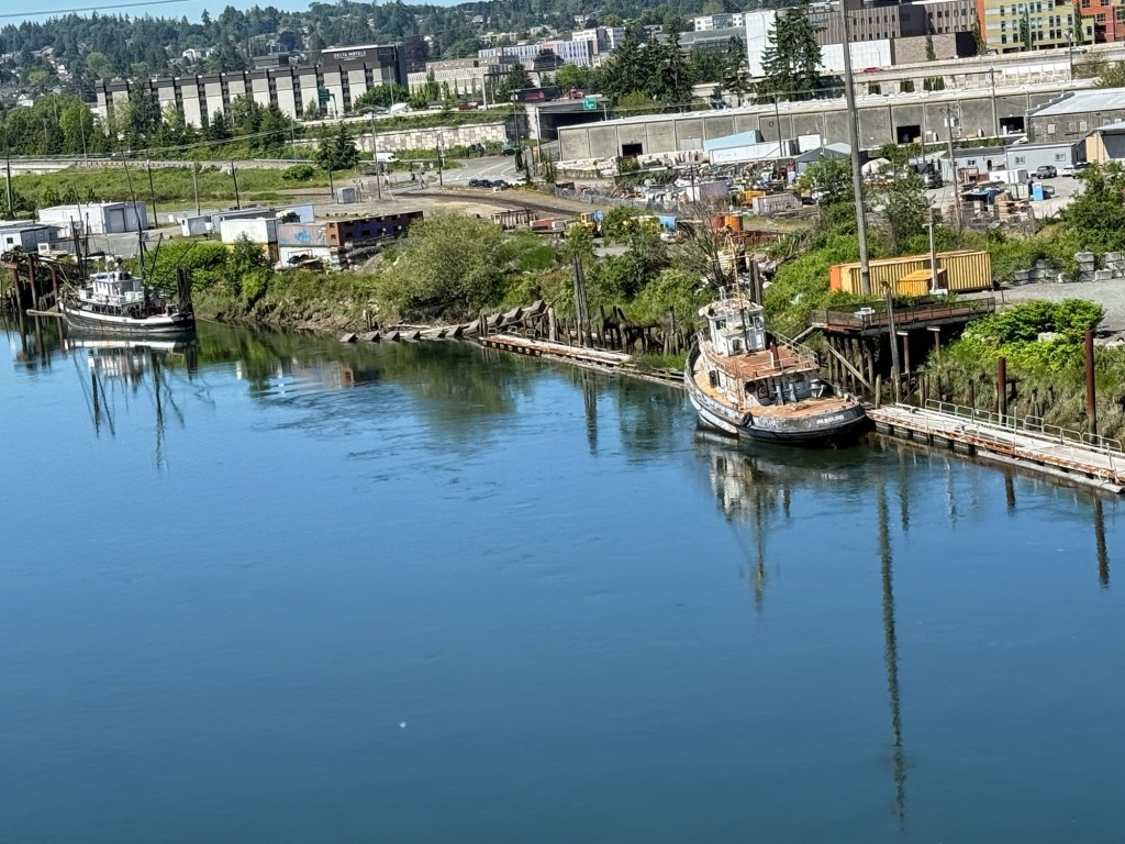 Here is a picture from the trestle trail we were on, looking back at part of Everett. The old boat is what caught my eye.