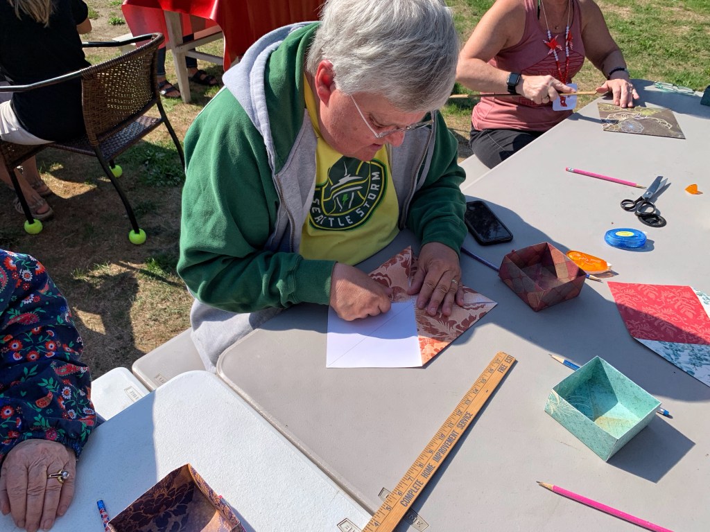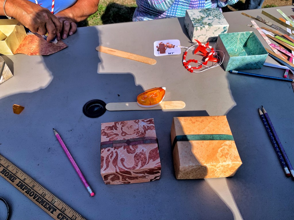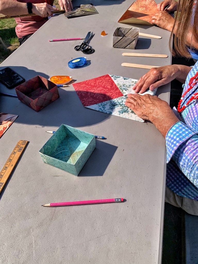 Our first activity after breakfast was making little boxes with Penny as our instructor.