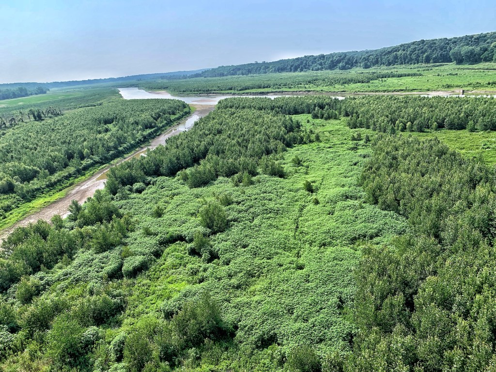 The trail crosses over the Des Moines River. Notice the flatness of the background…