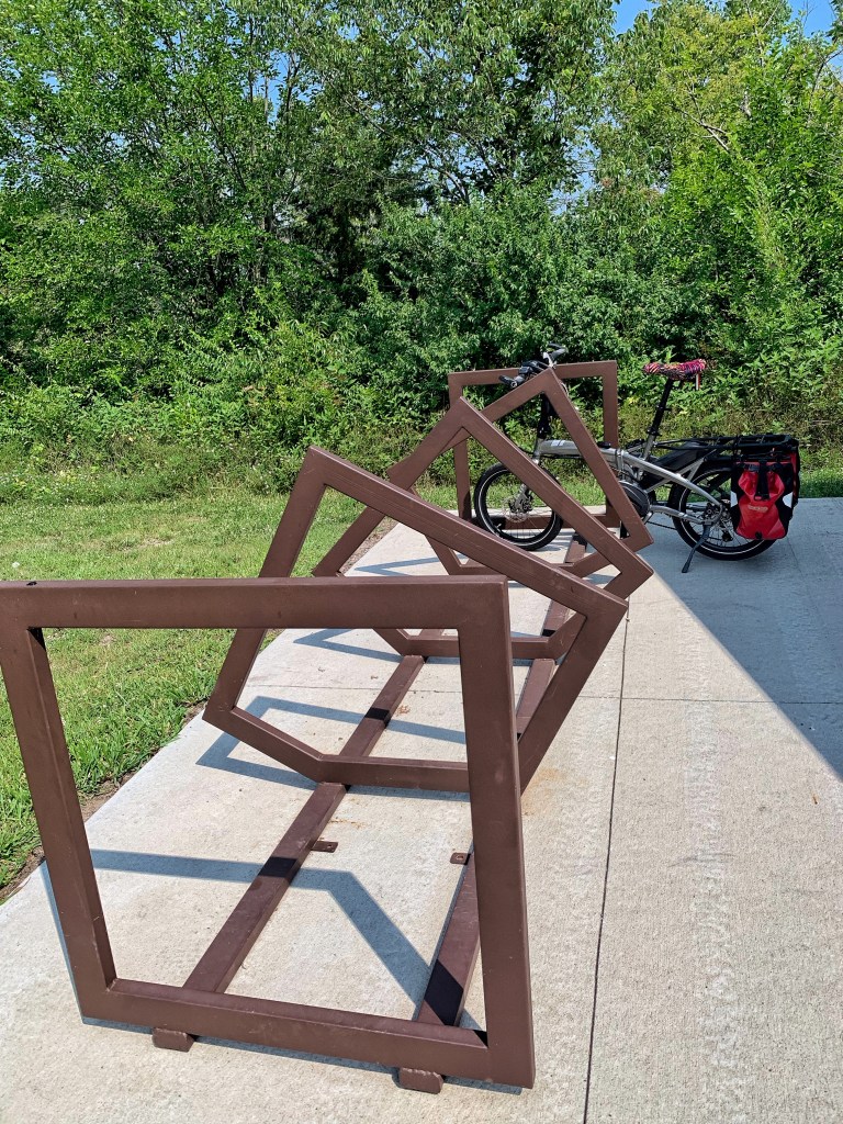 Those ‘structures’ that are on the High Trestle Bridge are a landmark for this area and used in many logos and in other ways — such as this bicycle rack.