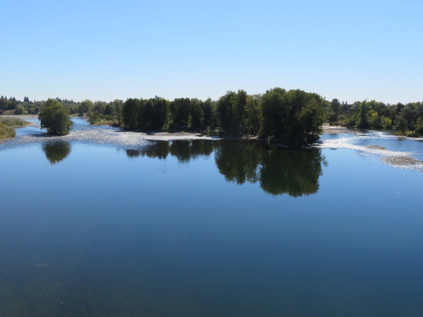 The trail meanders and winds through some forested areas, along the American River, and across several bridges.