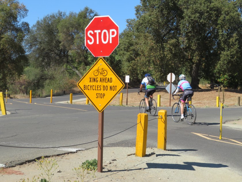 We had another evening with the family and more or less pre-packed our gear for an overnight bike outing ;’-). In the morning we hopped on our bikes to follow (what we thought would be) a good route from home to the American River Trail. The road left a lot to be desired as we shared it with fast moving auto traffic, rode in a bike lane that at times was chopped up or littered with debris, and passed through a few derelict-type areas.