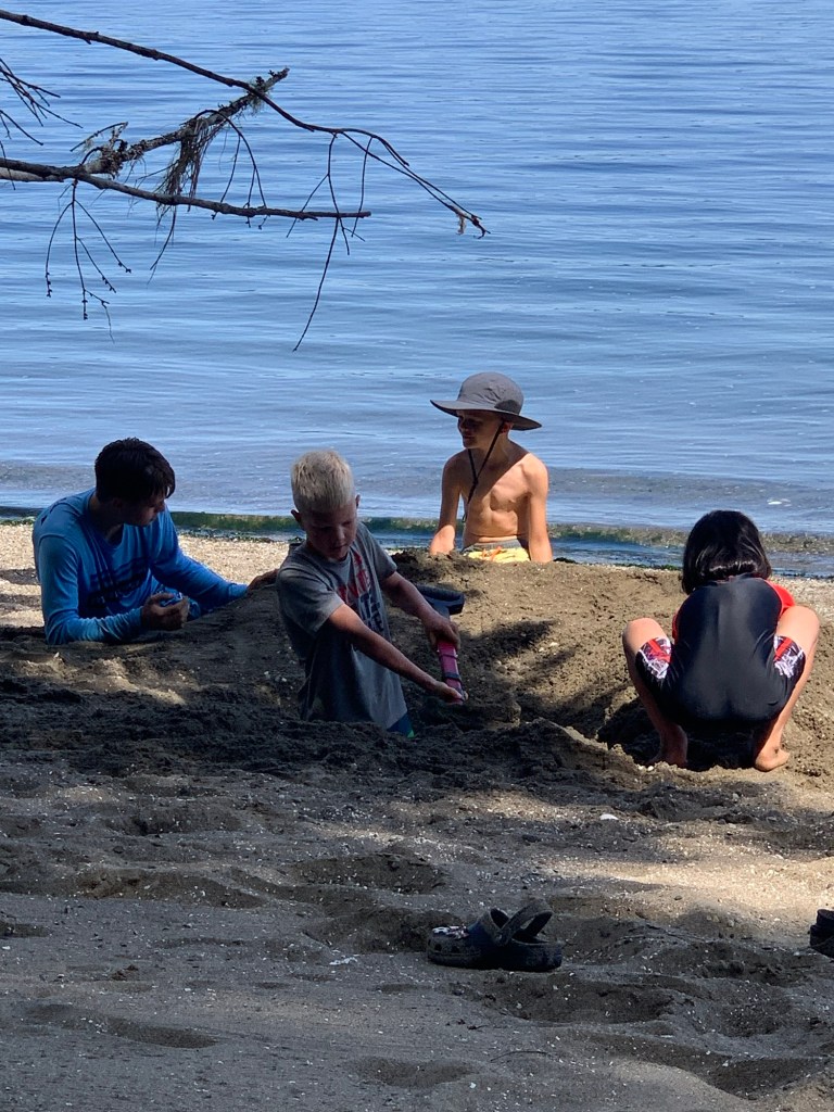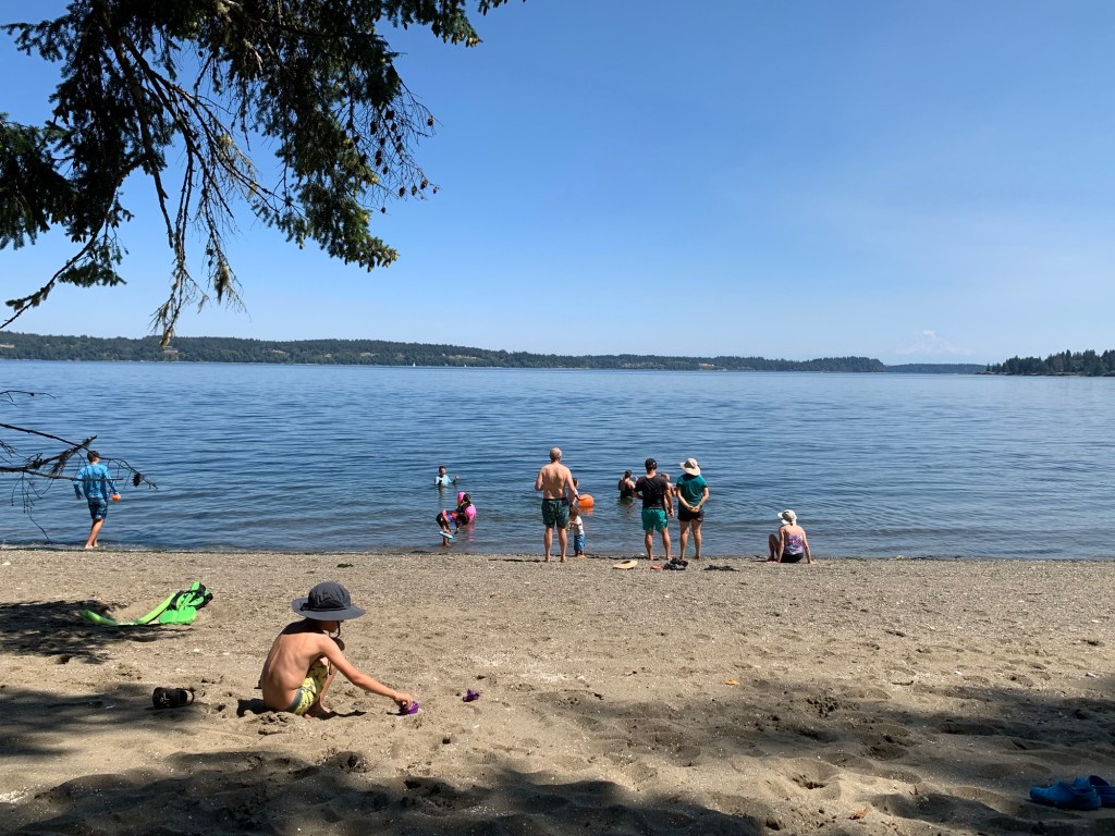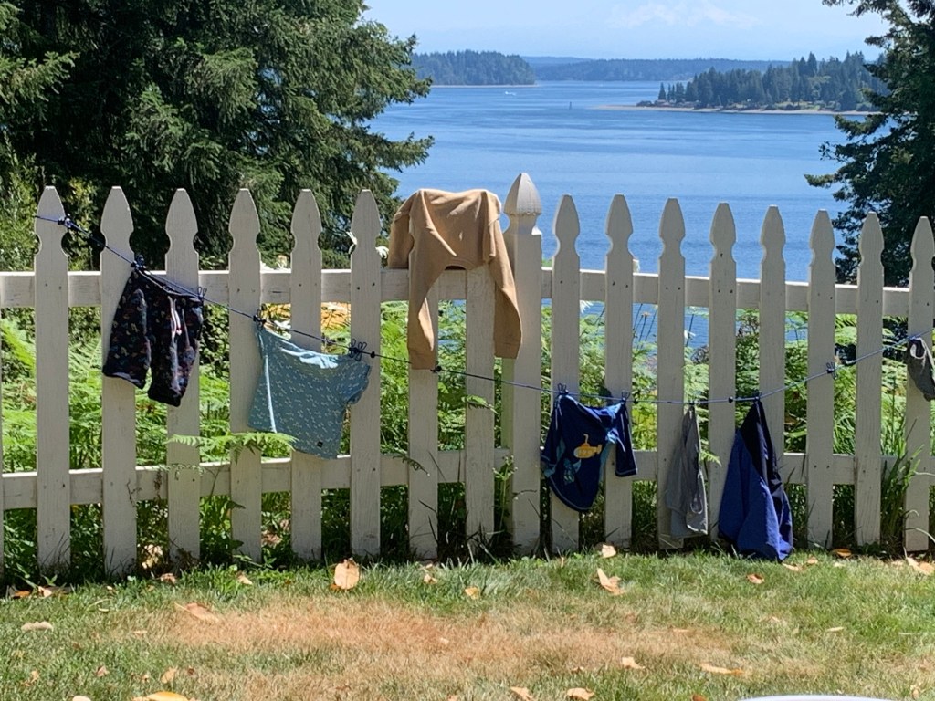 Why Harstene? Britta, Susan’s niece, had a planned trip to this area to have some time with her dad on Harstene Island, and with her mom in Leavenworth. Britta lives in Korea with her husband and three young children and they all made the trip here together. Her dad, Jack, arranged a (partial) family gathering at the family cottage on Harstene. We had a delightful picnic lunch, including some goodies brought from Korea, and then they all had time at the beach.