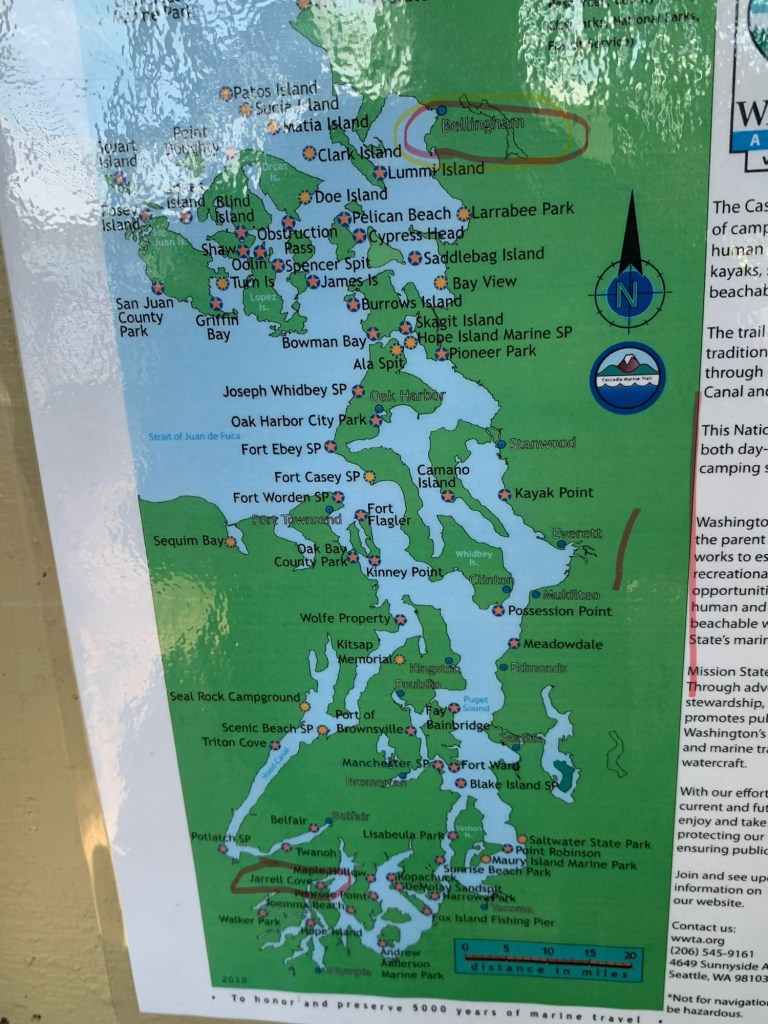 I have circled Bellingham at the top and Jerrell Cove at the tip of Harstene near the bottom of the map.