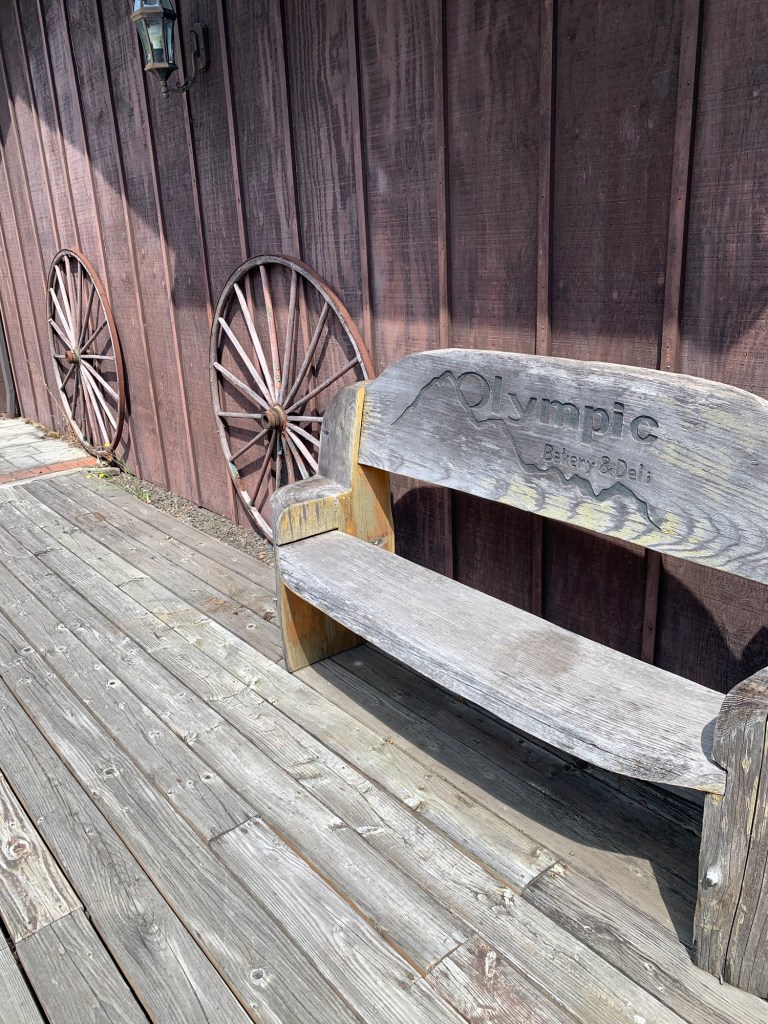 Back on the road we continued our way to Sequim with a stop at a Bakery and Deli to pick up a little lunch to have along the way. The bench does have the name “Olympic Bakery and Deli” carved into the back. It’s a little hard to see it all.